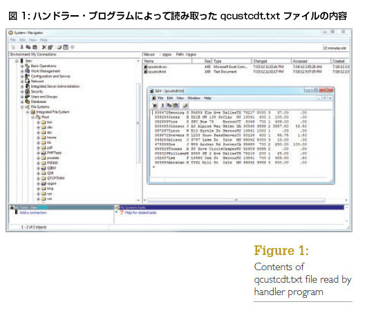 本号のプログラム例では、特定のフォーマットで作成されたテキスト・ファイルを扱うハンドラー・プログラムを作成しました。図1 はファイルの内容の例を示しています。qcustcdt.txt ファイルは IFS directory/rpgoa にあります。ファイルを作成するため、IBM i Access File Download プログラムを使用して、内容を QIWS/QCUSTCDT データベース・ファイルから自分の PC の ASCII テキスト・ファイルにダウンロードしました。次に、PC からテキスト・ファイルを IFS にコピーしました。テキスト・ファイルを作成したときに使用した具体的な手順は重要ではありません。あなたが、同じテキスト・ファイル例を作成できるように手順を示しているだけです。