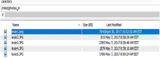 始める前に、画像の入っているIFS内のフォルダを見てみましょう。 私の犬の5枚の写真が入っています。