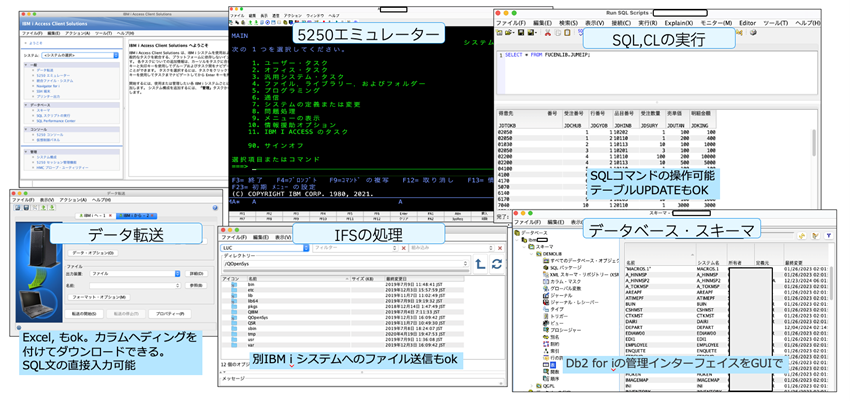 ACSは、単なる5250エミュレーターではありません。以下のように、多彩な機能を備えた統合クライアントツールです。