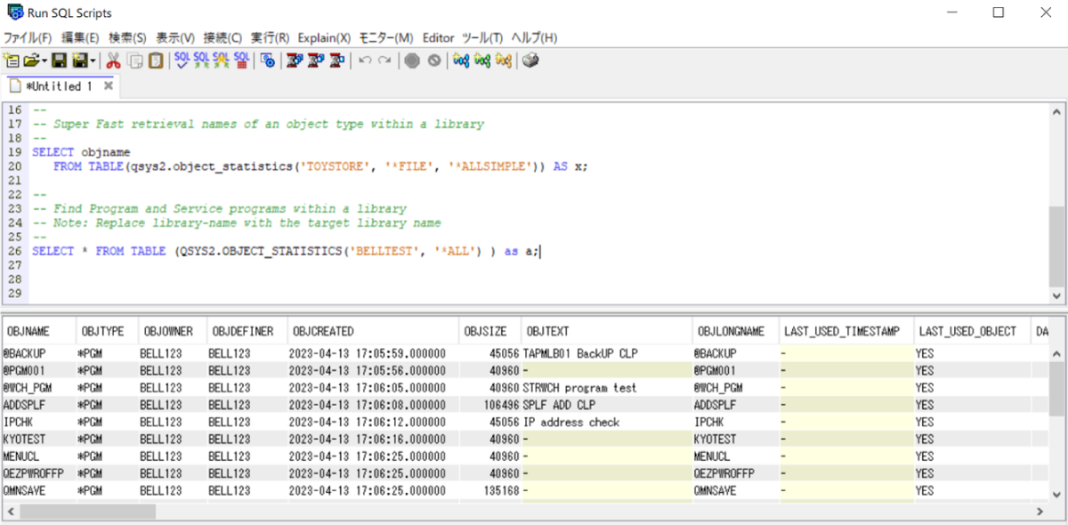 同様にライブラリー内のオブジェクト一覧をEXCELへ纏めるのにSQLを使用したいと思っていますが、どの関数を使用するなどの情報が分かりません。