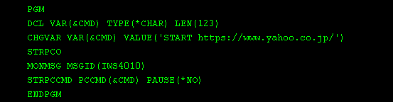 ※CLソース編集にあたり、半角英小文字が入力できない場合、SEUの画面で「F13=セッション省略値の変更」を押し「大文字入力専用」のパラメータを「N」にしてください。