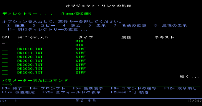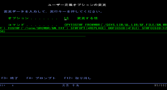 テキストファイルへ変換するメンバーを確定したら実行キーを押すと CPYTOSTMFコマンドが実行されて指定のIFS内へコピーされます。
