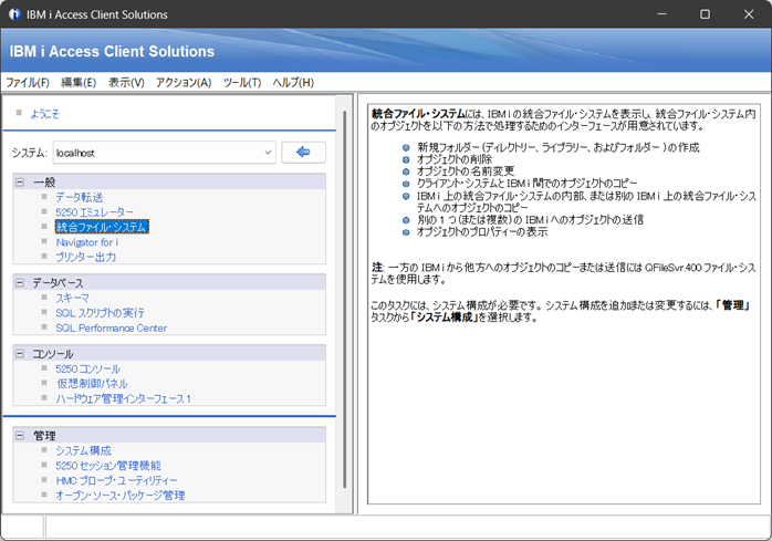 ACSのメニューを開き「統合ファイル・システム」を選択します。