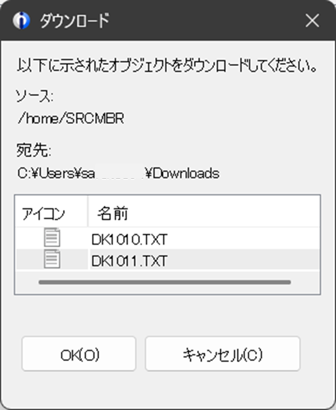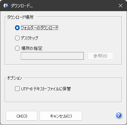 ダウンロード対象と、ダウンロード先の確認画面が表示されますので、OKボタンを押すことでダウンロードされます。